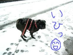 もっとガッツリ積もったら、脚や腹が汚れちゃうことないんですけどねー。あ、モジローさん、黒いから汚れって目立たないのかしら?