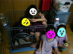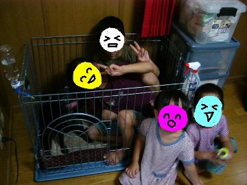 モジロー、最初は子供たちに興奮気味でしたが慣れたというかいい遊び相手というか(^_^;)